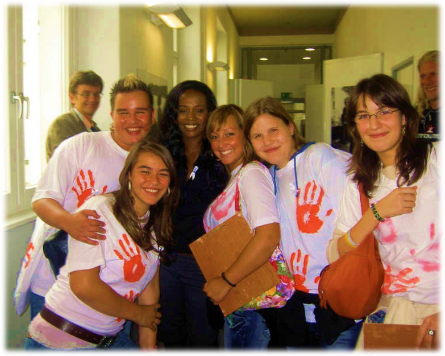 2004 organisierten wir, unterstützt von starken Kindernothilfe, terre des hommes und Unicef, den ersten Red Hand Day auf der Bildungsmesse didacta in Köln. Kurz vorher meldete sich Senait Mehari und kam spontan aus Berlin, um uns zu unterstützen.