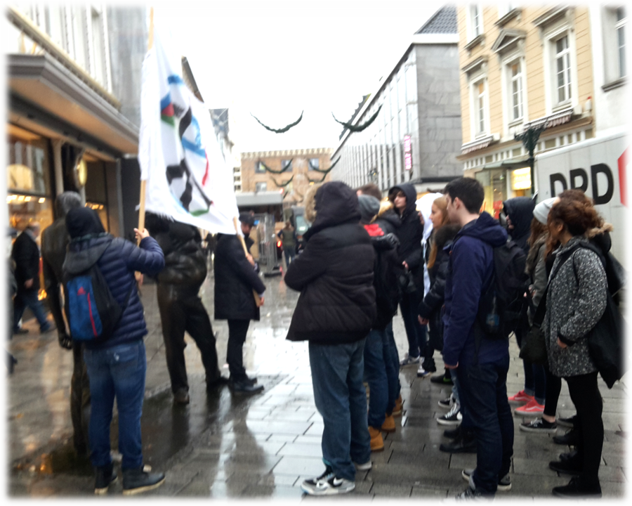 Workshop für eine Realschulklasse in Sachsen-Anhalt mit Filmausschnitten über die autonome Frauenbewegung in Syrien, die aktuell bedroht ist. Mehr