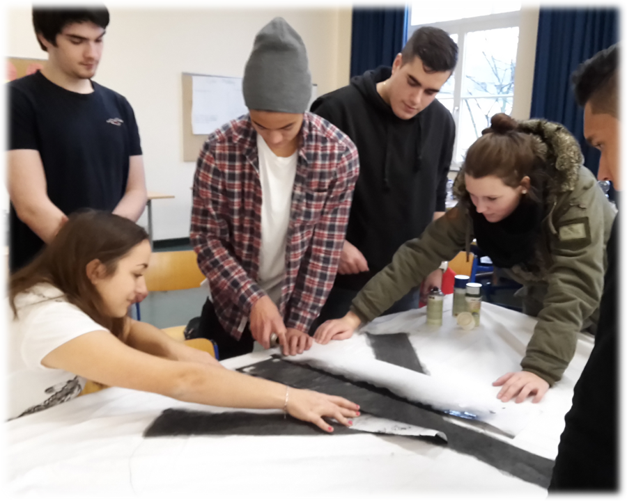 Nach intensiven Workshops waren die Jugendlichen begeistert, mit ihren roten Händen zu protestieren.