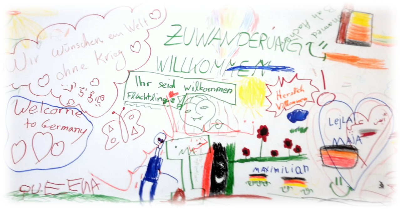 2015 Sprachprojekt „WIR SIND HIER“ – Grundschule, Realschule und Flüchtlingsklasse sammelten Sprichwörter aus ihrem Land und trugen sie in beiden Sprachen vor. Ein Film entstand