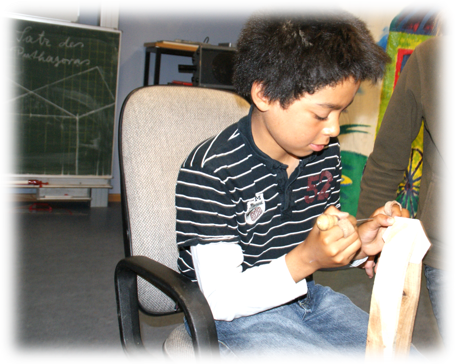2010 Fußball fasziniert immer wieder und die Geschichten um die arbeitenden Kinder waren gerade wieder in den Medien. In der Gotenschule in Düsseldorf konnten die Kinder mit unserem Original-Werkzeug merken, wie schwer es ist einen Ball zu nähen.