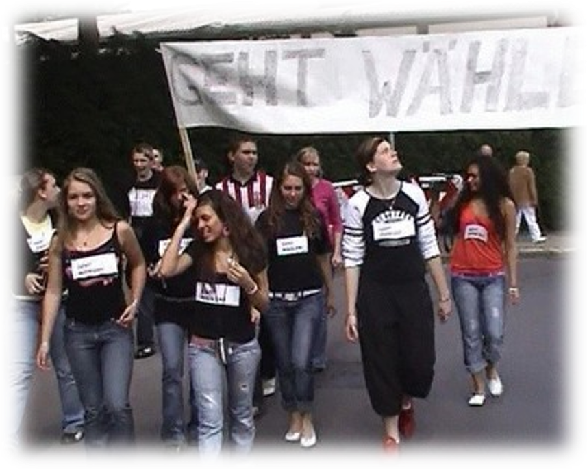 2005 verbanden wir mit der Aktion FAIRES WAHLCAFÉ den Gedanken des Fairen Handels mit der Bundestagswahl. Essener Schüler*innen machten eine Demo für das Wählen und luden in ihr Wahlcafé ein.