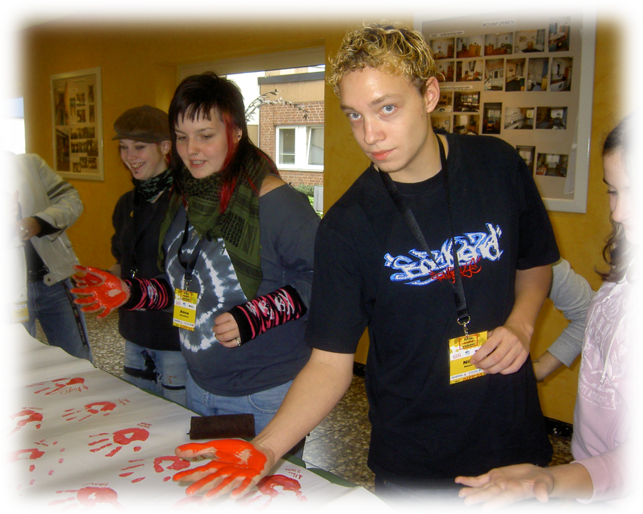 2009 Aktion Rote Hand in Hanau, gemeinsam mit dem Volksbund Deutsches Kriegsgräberfürsorge. Der Workshop mit den diesen Jugendlichen hat sehr viel Spaß gemacht.