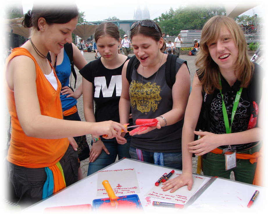 2007 Evang. Kirchentag Köln: Wir testeten die neue Form der Aktion Rote Hand und wurden überrascht. Die Jugendlichen stürmten unseren Stand.
