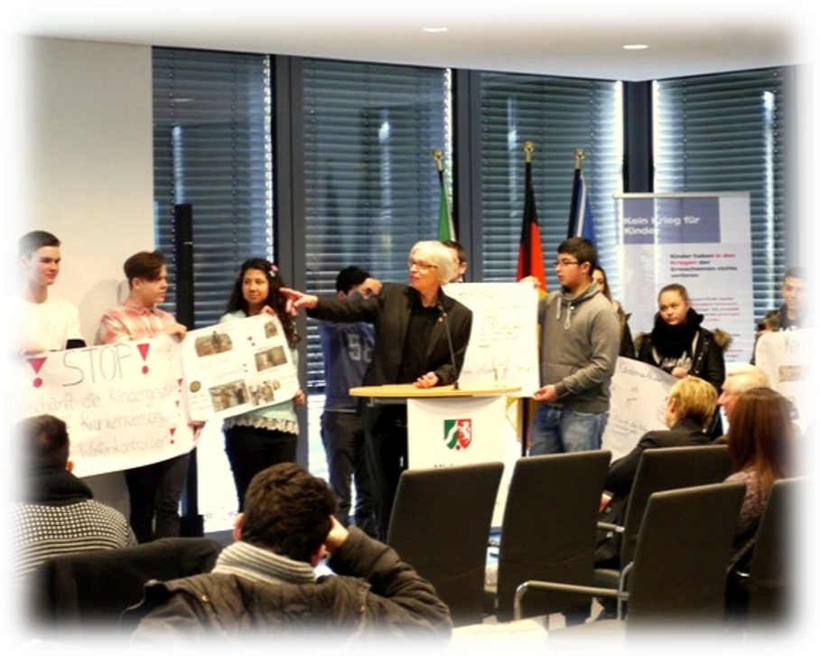 2015 konnten wir mit einer Hauptschulklasse ein Veranstaltung zu Kinder in Kriegen mit dem Gesundheitsminister NRW und der Aktion Rote Hand durchführen.