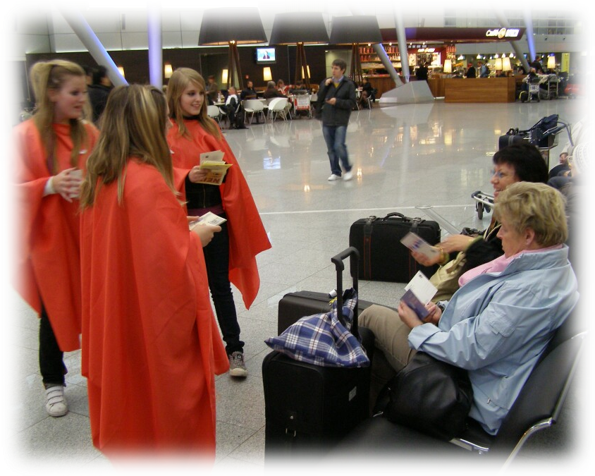 2007 Flughafen Düsseldorf: 30 Jugendliche konnten Passagiere ansprechen und um Mithilfe bitten, sexuelle Gewalt an Gleichaltrigen zu verhindern.