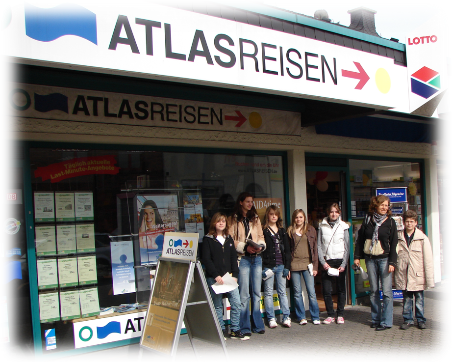 2007 Kerpener Jugendliche besuchten alle Reisebüros und gaben ihre selbstentwickelten Flyer gegen sexuelle Gewalt mit der Bitte um Weitergabe an die Kund*innen.
