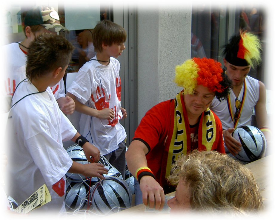 2006 WM-Fieber: Die Aktivgruppen in Kerpen verkauften fair-gehandelte Fußbälle und wurden mit weitem Abstand „Deutscher Meister“ mit 122 Bällen. Sie wurden dafür von TransFair ausgezeichnet.