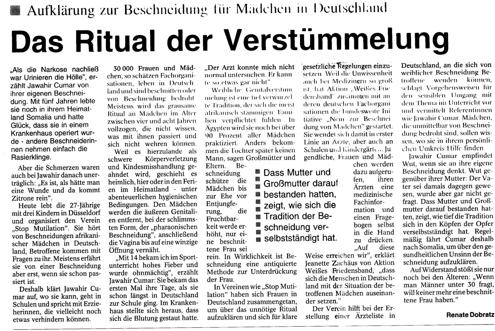 Ein zentrales Anliegen war die Verhinderung von weiblicher Genitalbeschneidung zusammen mit Jawahir Cumar, stop mutilation