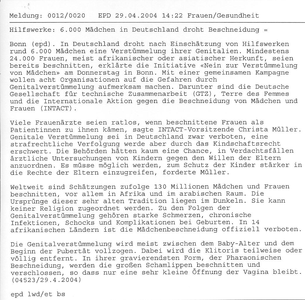 2011 Im bundesweiten Netzwerk Integra gegen FGMC arbeiten wir seit 2006 intensiv mit. Wir gestalten die Webseite und arbeiten dem Sprecher*innen-Rat zu.
