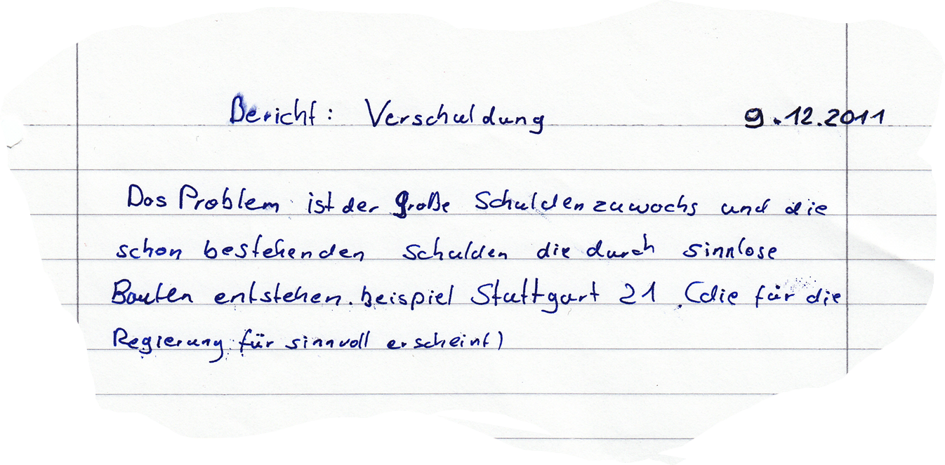 2014 Projekt „Zukunft – eine Falle?“. Die Kinder des Jugendclubs VILLA in Mönchengladbach präsentierten ihre Ideen und Forderungen der Bezirksbürgermeisterin.