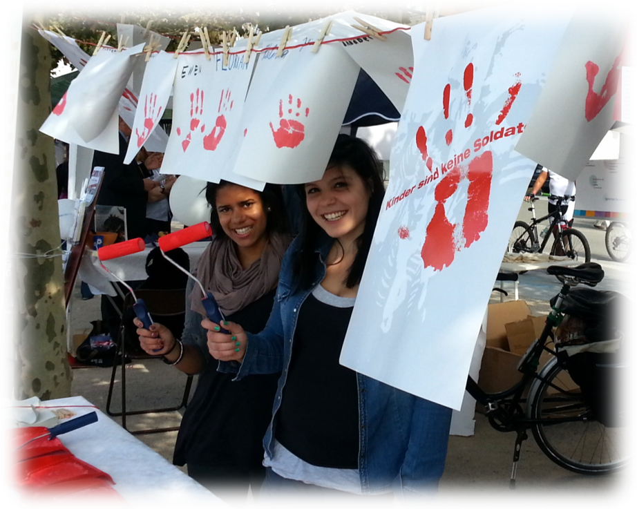 Und dann übergebt ihr eure roten Hände den Politiker*innen, die begeifen sollen, dass diese Kinder in Kriegen mehr als nur Nicken und Bedauern brauche n.
