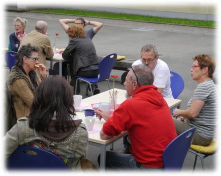 In Essen hat die Gesamtschule Borbeck wieder zum Wahlcafé eingeladen. Wieder, weil diese Schule seit 2005 die Wahlprojekte mitgemacht hat. Vor der Schule trafen sich die Menschen der Umgebung – gingen erst wählen, dann Kuchen essen – mit einer Tasse fair gehandelten Kaffee. Die Schüler waren begeistert, der Politiklehrer mindestens ebenso. Das schafft bei den Jugendlichen ein anderes Politikverständnis. Die werden mal wählen gehen.