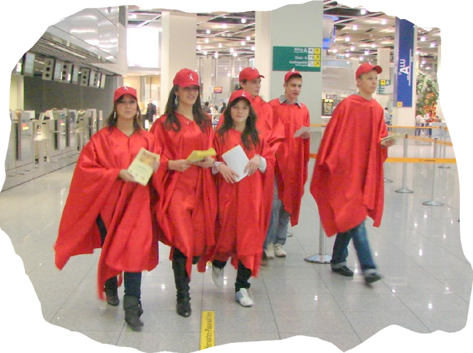 2007 Flughafen Düsseldorf: 30 Jugendliche konnten Passagiere ansprechen und um Mithilfe bitten, sexuelle Gewalt an Gleichaltrigen zu verhindern.